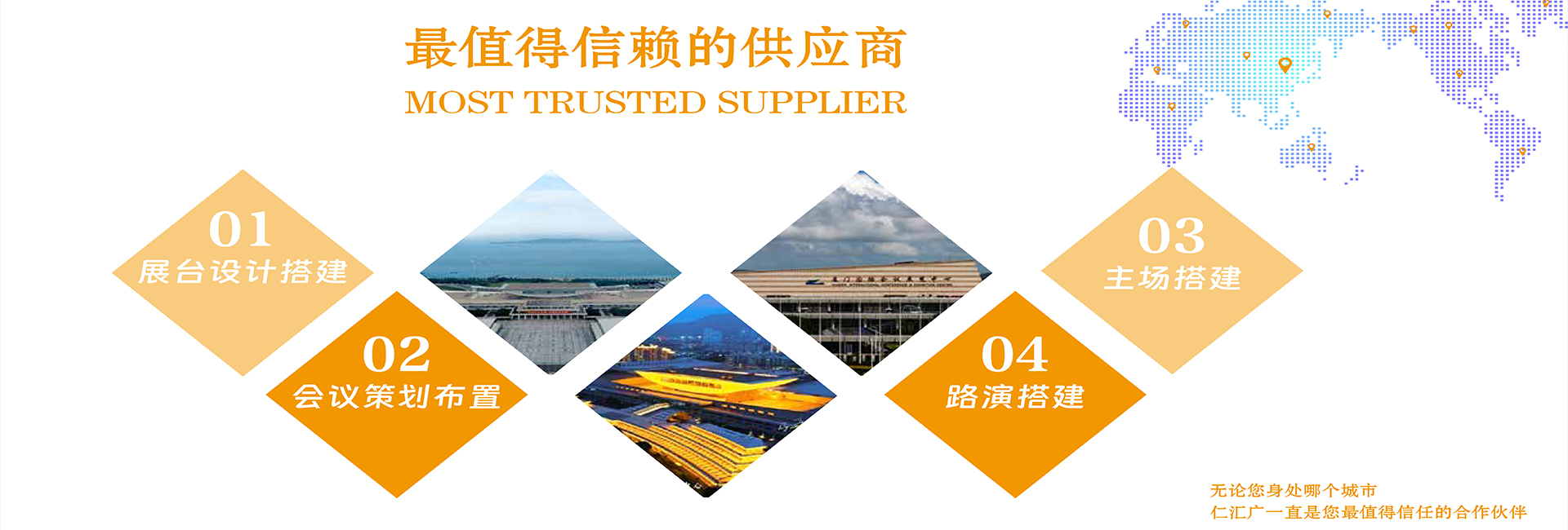 廈門仁匯廣展覽服務(wù)有限公司是一家從事展覽展示,特裝制作搭建,會議策劃布置,主場搭建,大型活動工程制作搭建,戶內(nèi)外路演搭建等專業(yè)公司。